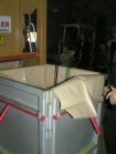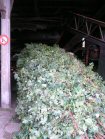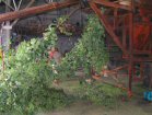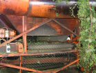 The bines are attached to the conveyor . . . | . . .which drags them into the machine . . | . . . which strips off the cones. They fall through to the moving belt below, and the waste is carried away. | |