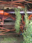 You'll just have to imagine the rattling roar of the machinery and the clean smell of fresh hops. | The cones go up to the drying floor . . . | . . heated by the furnace below. | |