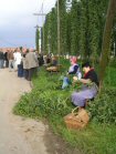 Then you need lots . . . and lots . . . and lots of people to do the laborious task of stripping the hop cones from the bines. |