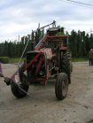 Time for mechanisation! A tractor with a device to strip the bines from the poles, load them on the trailer, and take them back to the shed, and a machine Heath-Robinson would be proud of!. | |||