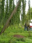 Hops are climbing plants - the bines grow up wires supported by tall poles |