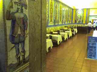 The way in takes you past the bar | Just inside you meet the first of the famous tiles . . . | . . . including this guy suggesting how you should spend your evening | ||