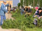 Then you need lots . . . and lots . . . and lots of people to do the laborious task of stripping the hop cones from the bines. |