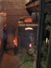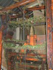 You'll just have to imagine the rattling roar of the machinery and the clean smell of fresh hops. | The cones go up to the drying floor . . . | . . heated by the furnace below. | |