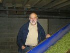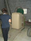 The processed hops come down . . . | . . . to where an open sack awaits. | On the way they are professionally appraised by Jeannette and Anny . . . | . . . while I just stand there looking decorative! |