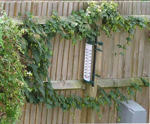 Hops are climbing plants - the bines grow up wires supported by tall poles |