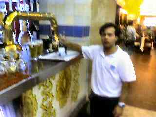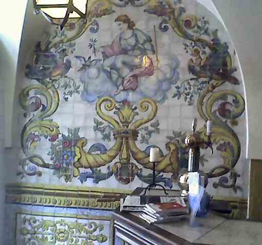 The way in takes you past the bar | Just inside you meet the first of the famous tiles . . . | . . . including this guy suggesting how you should spend your evening | ||